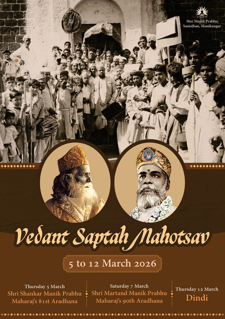 This week-long celebration of devotional music, scripture recitations, and philosophical discourses is dedicated to the Aaradhana of Shri Martand Manik Prabhu and Shri Shankar Manik Prabhu. Known as the Saptaha, it is observed in the Hindu month of Phalgun, typically falling in March or April. A highlight of the festival is the evening Bhajan led by His Holiness, drawing large gatherings of devotees. The Saptaha culminates in the vibrant Dindi—a nightlong procession filled with devotional singing and joyous participation. The entire week radiates divine energy, inspiring deeper reflection and connection with the teachings of the Gurus. Annadaan will be conducted on a large scale during the Mahotsava.